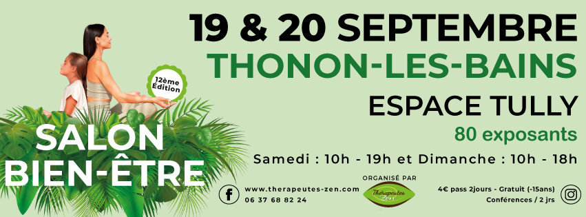 Thérapeutes Zen basé en Auvergne Rhône-Alpes, organise ses salons Bien Être en Auvergne Rhône-Alpes et zone frontalière Suisse par sa proximité avec Genève et Lausanne.