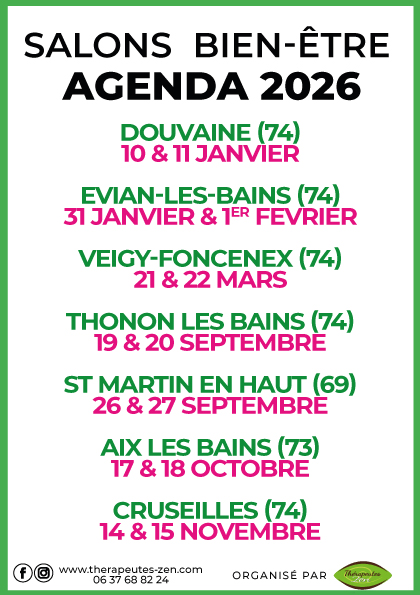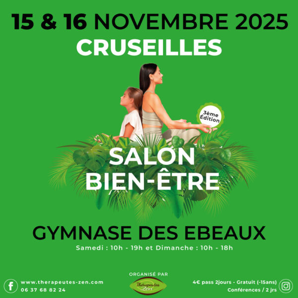 Thérapeutes-Zen vous invite à découvrir le programme complet du salon à Cruseilles les 15 & 16 Novembre !